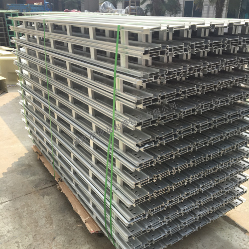 鋁合金防腐橋架分別采用異型型材擠壓型材加工橋架面板和梯檔,可制成梯級式、盤形、槽形結構,以滿足不同場合的需求,也可采用鋁板折邊成型,制作成槽形匯線槽及各種特殊彎通方式,滿足電纜布線的需要。在鋁合金擠壓型材成型后進行固溶和人工時效處理,不僅可以提高其耐蝕性能,而且可以提高鋁合金的強度,從而使鋁合金橋架的承載能力得到保證。